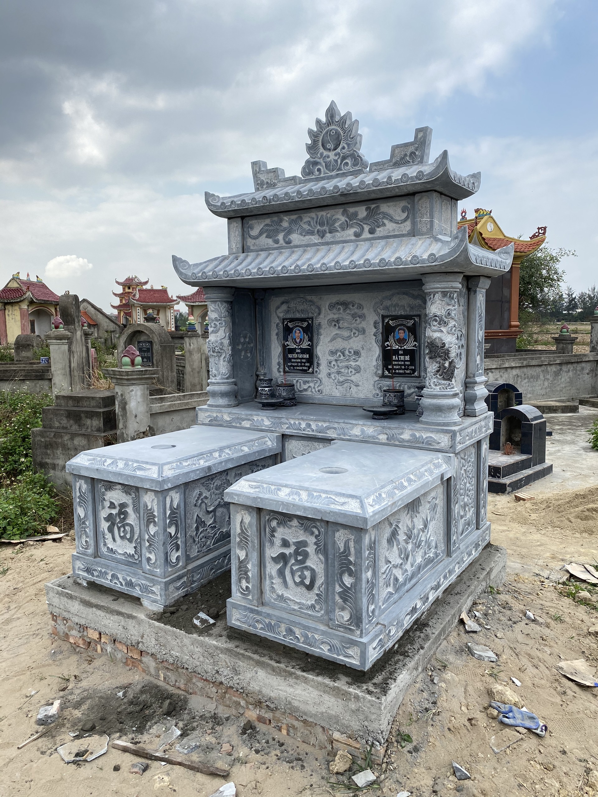 Mộ đá xanh đen 2 mái 8